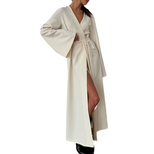 Kleid mit langem Schlitz und langen Ärmeln zum Schnüren