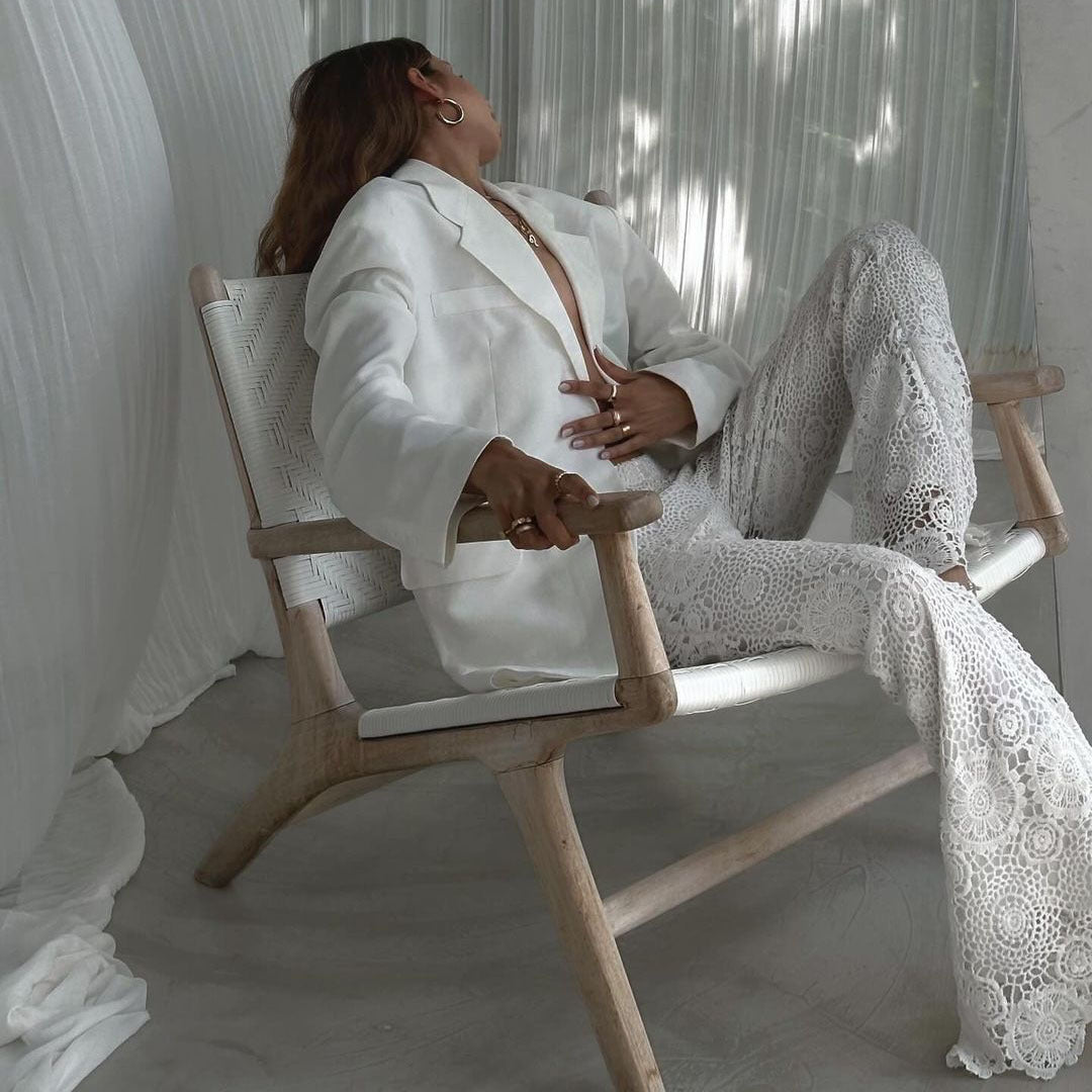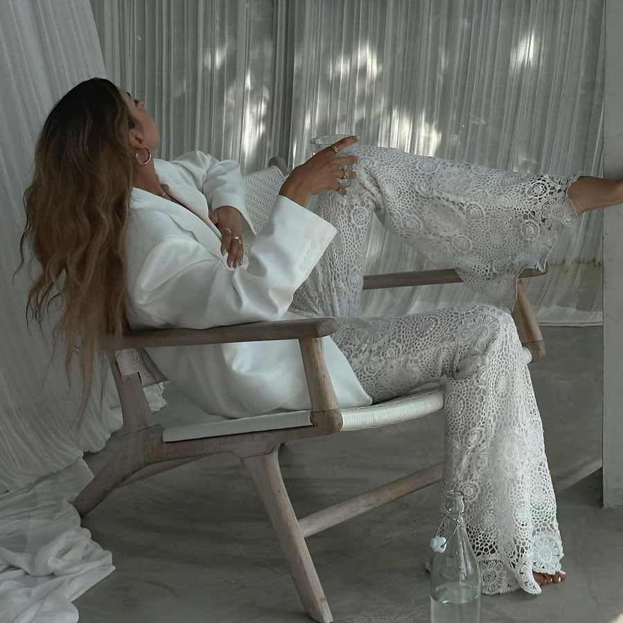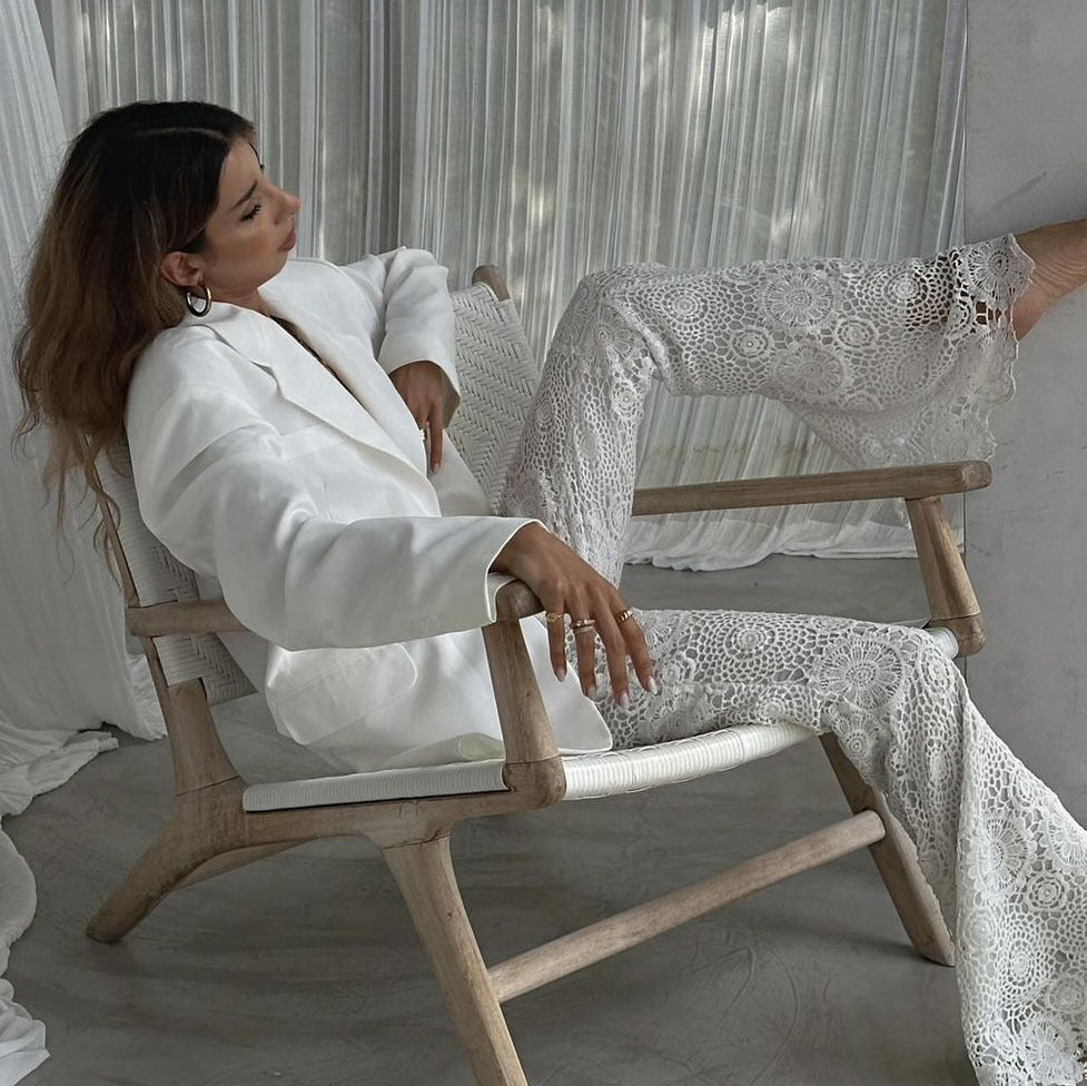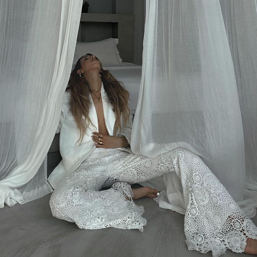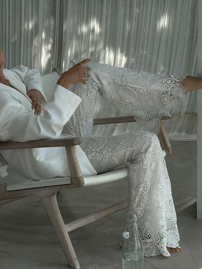 Lässige, transparente Hose im französischen Stil mit Spitze im Urlaubsstil