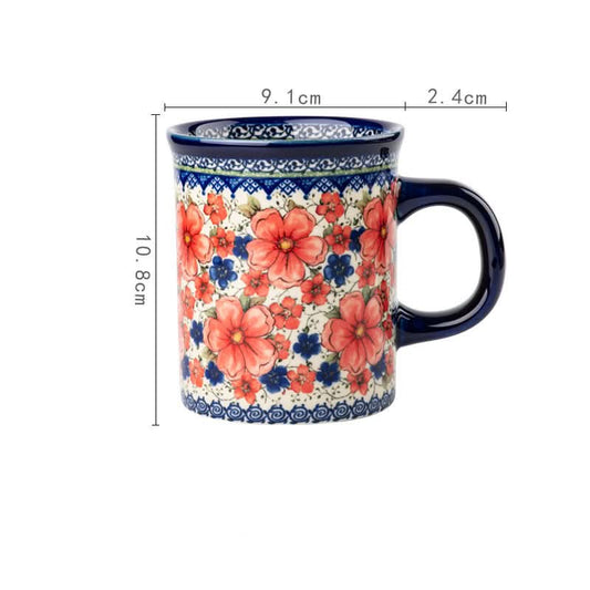 Tasse en céramique peinte à la main en trois dimensions, ornée d'une tulipe et d'une rose.