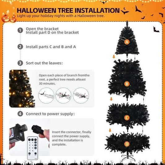 Sapin de Noël artificiel Douglas de 2,13 m (7 pi) non illuminé, avec branches réalistes et 1346 pointes, style Halloween noir