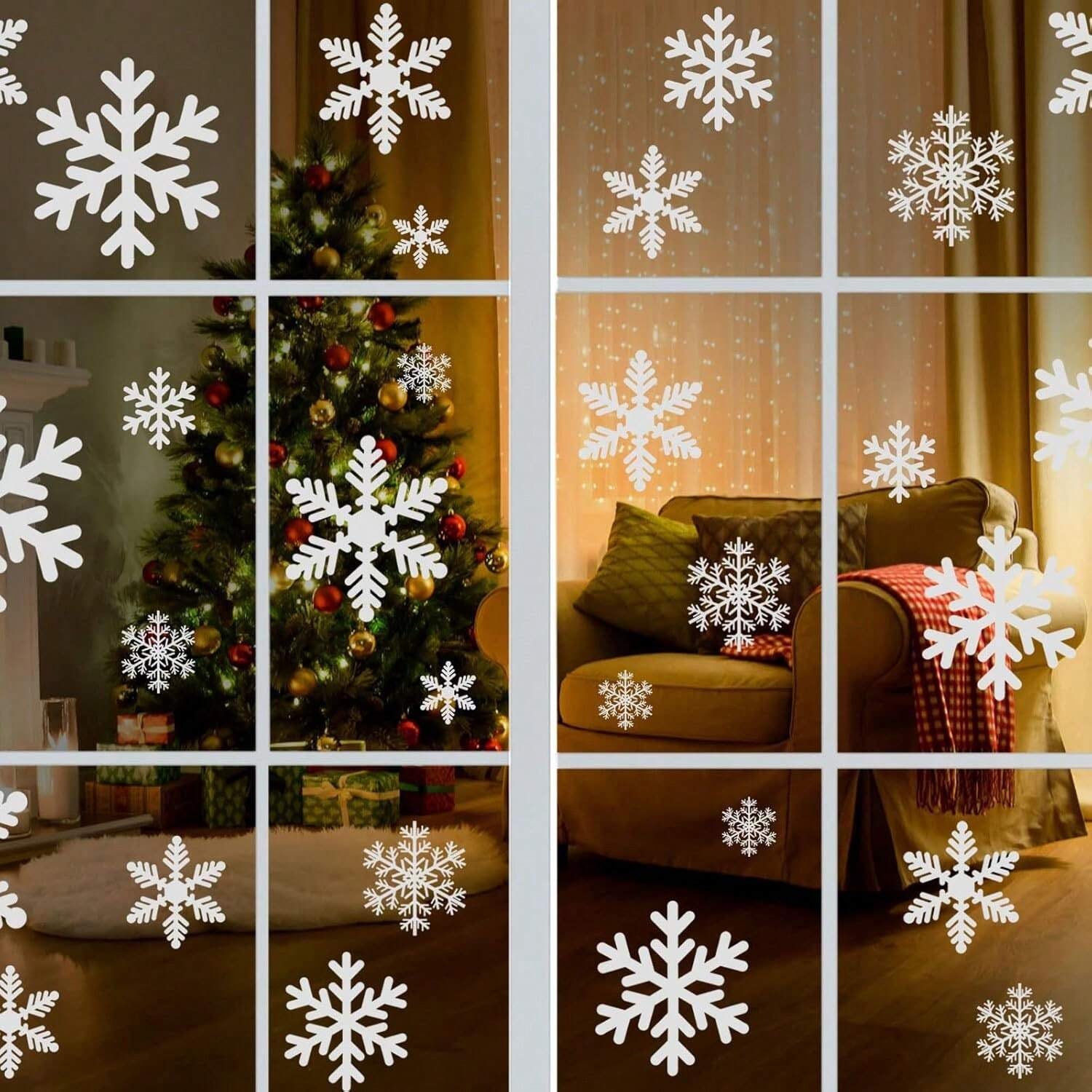 135Pcs Christmas Window Clings Snowflakes Window Decals Static Window Stickers For Christmas Decorations Window Decor Ornaments Xmas Party Supplies Thanksgiving Party Decor -5-Sheet,Christmas